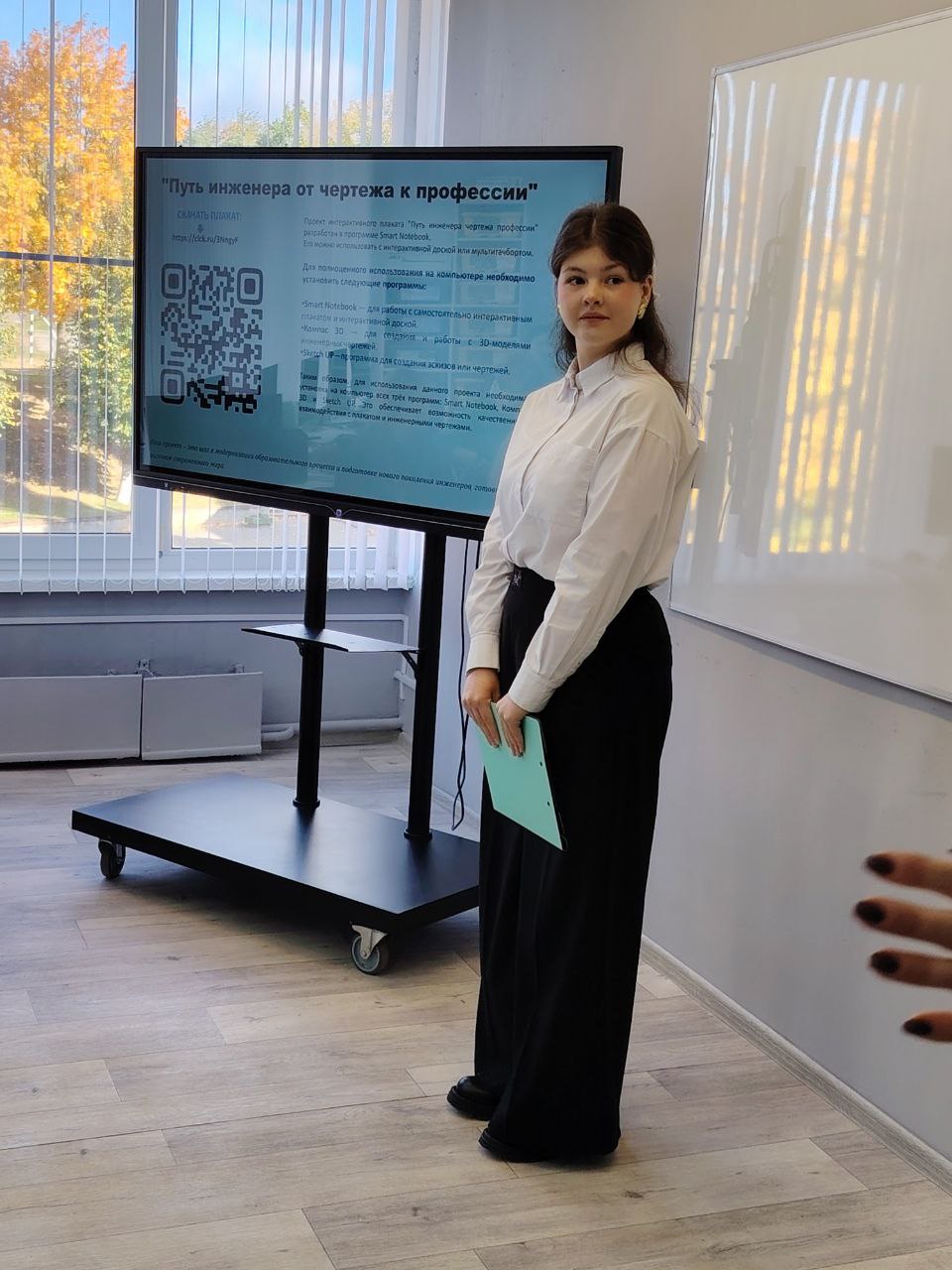 Аксамит Г.Н., учитель информатики, совместно с учащейся XI класса представила интерактивный плакат «Путь инженера: от чертежа к профессии». по теме