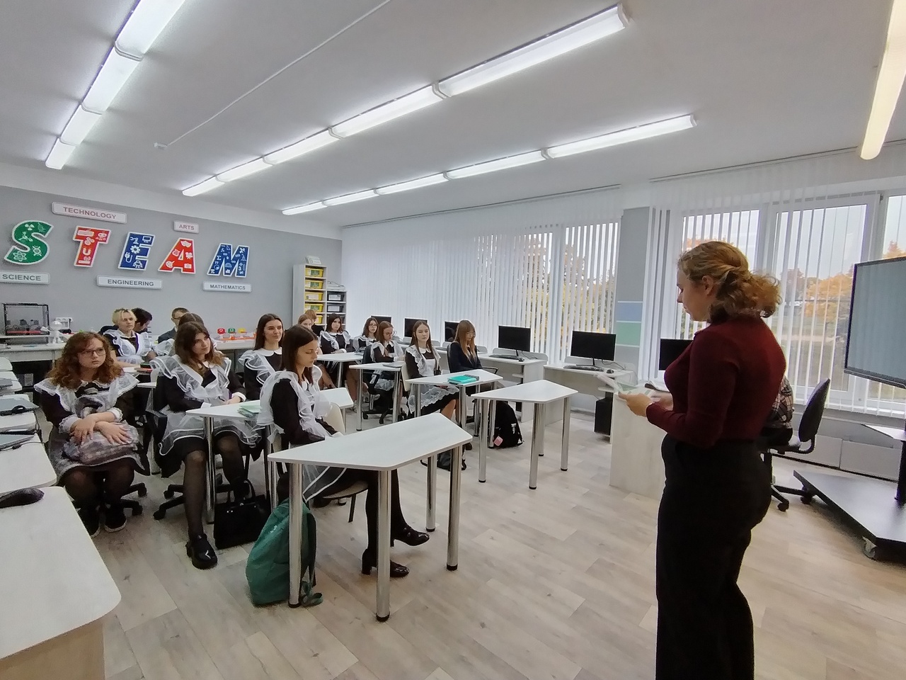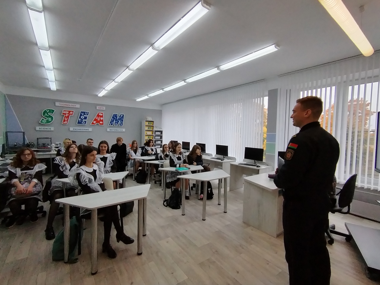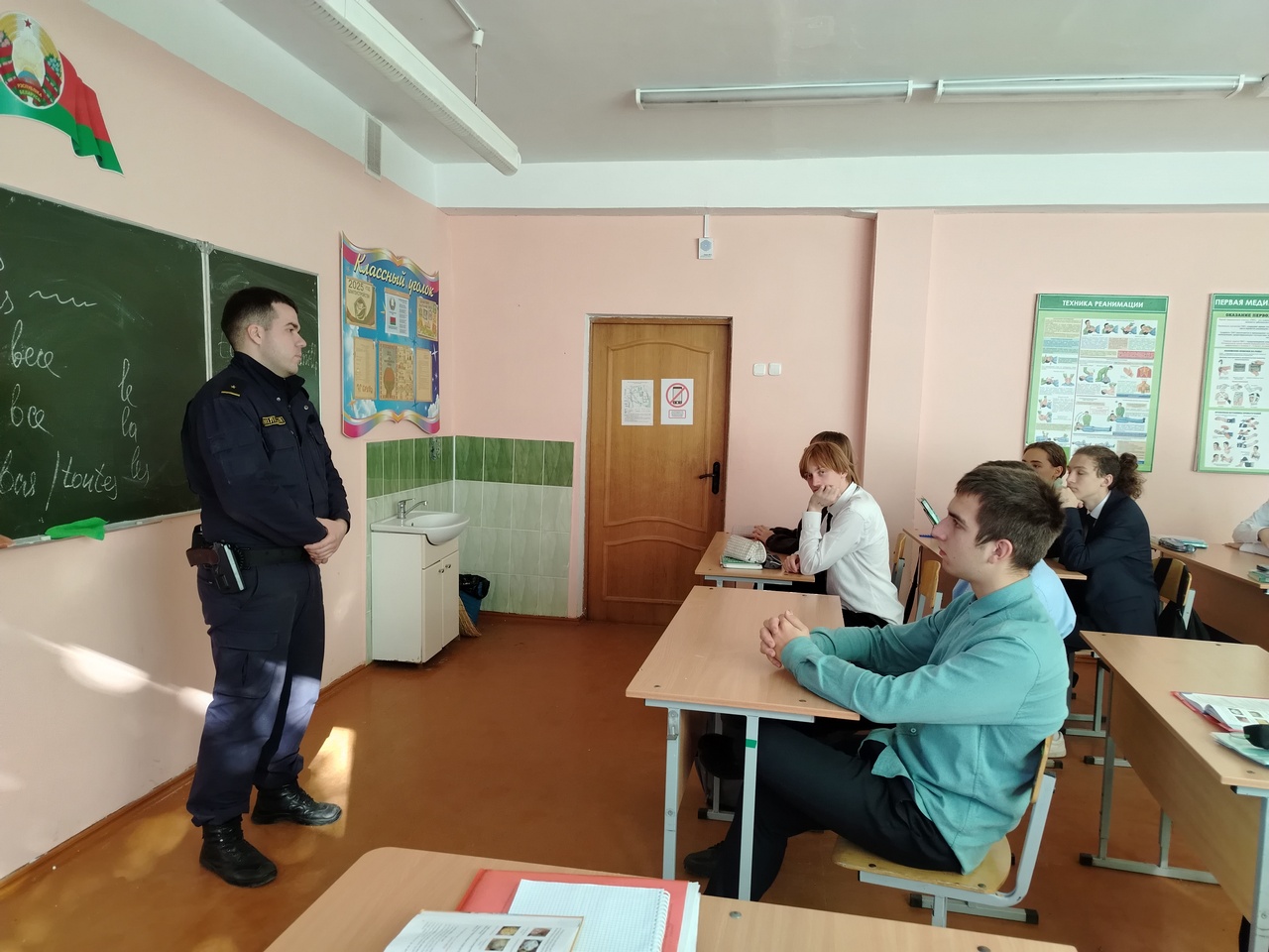 8 октября состоялась профориентационная встреча учащихся 11-х классов с представителем РОВД г. Волковыска Юреня Артёмом Николаевичем