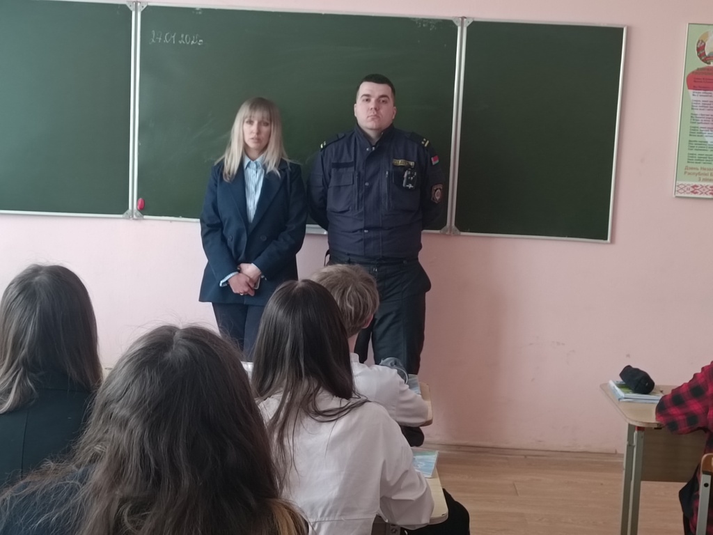 Встреча инспектора ИДН Волковысского РОВД Юрени А.Н. и специалиста ИДН Волковысского РОВД Шило М.Я. с учащимися 8-10 классов