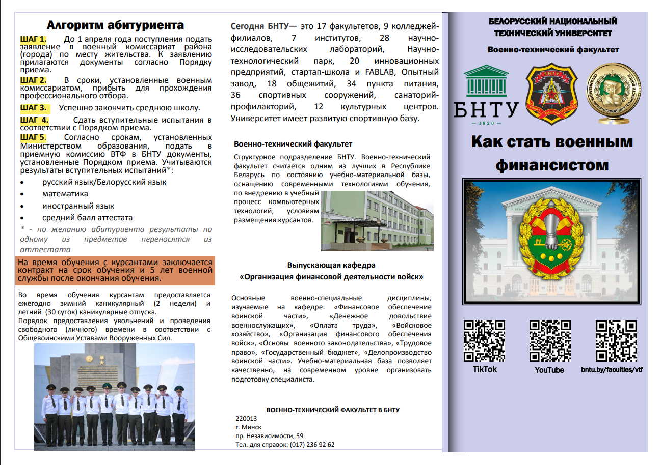 «Организация финансовой деятельности войск» военно-технического факультета БНТУ