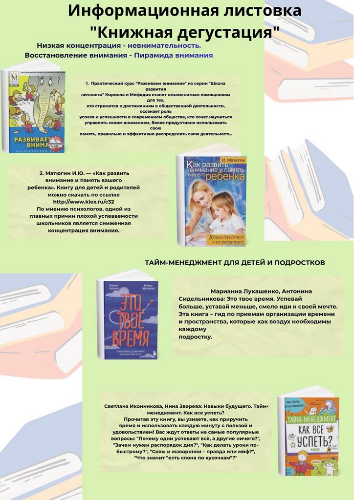 Педагог-психолог Сонец С.Н. совместно со студенткой факультета психологии ГрГУ им. Я. Купалы Демьянович А.С. подготовили серию информационных листовок под общим названием «Книжная дегустация».