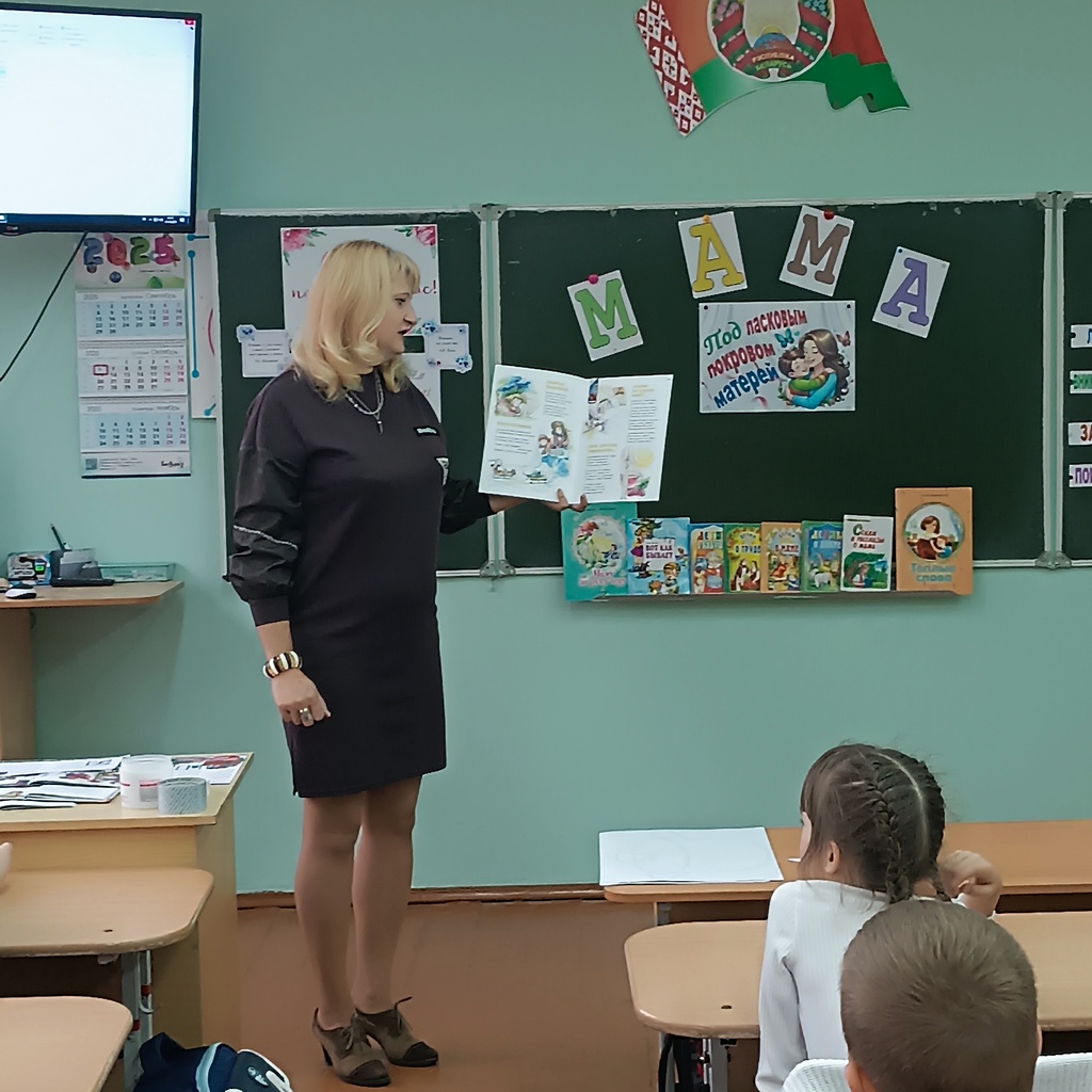14 октября во 2“А” классе работник филиала «Городская библиотека №46» Виктория Вацлавовна Хотей провела литературно-музыкальное мероприятие “Под ласковым покровом матерей”, приуроченное ко Дню матери.