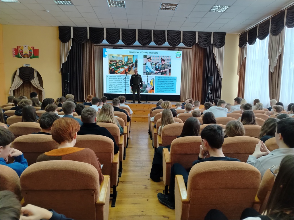 Для учащихся 9–11-х классов наиболее актуальной стала информация о поступлении в военные учебные заведения. Подробно остановились на преимуществах обучения в Военной академии Республики Беларусь и на военных факультетах гражданских вузов: