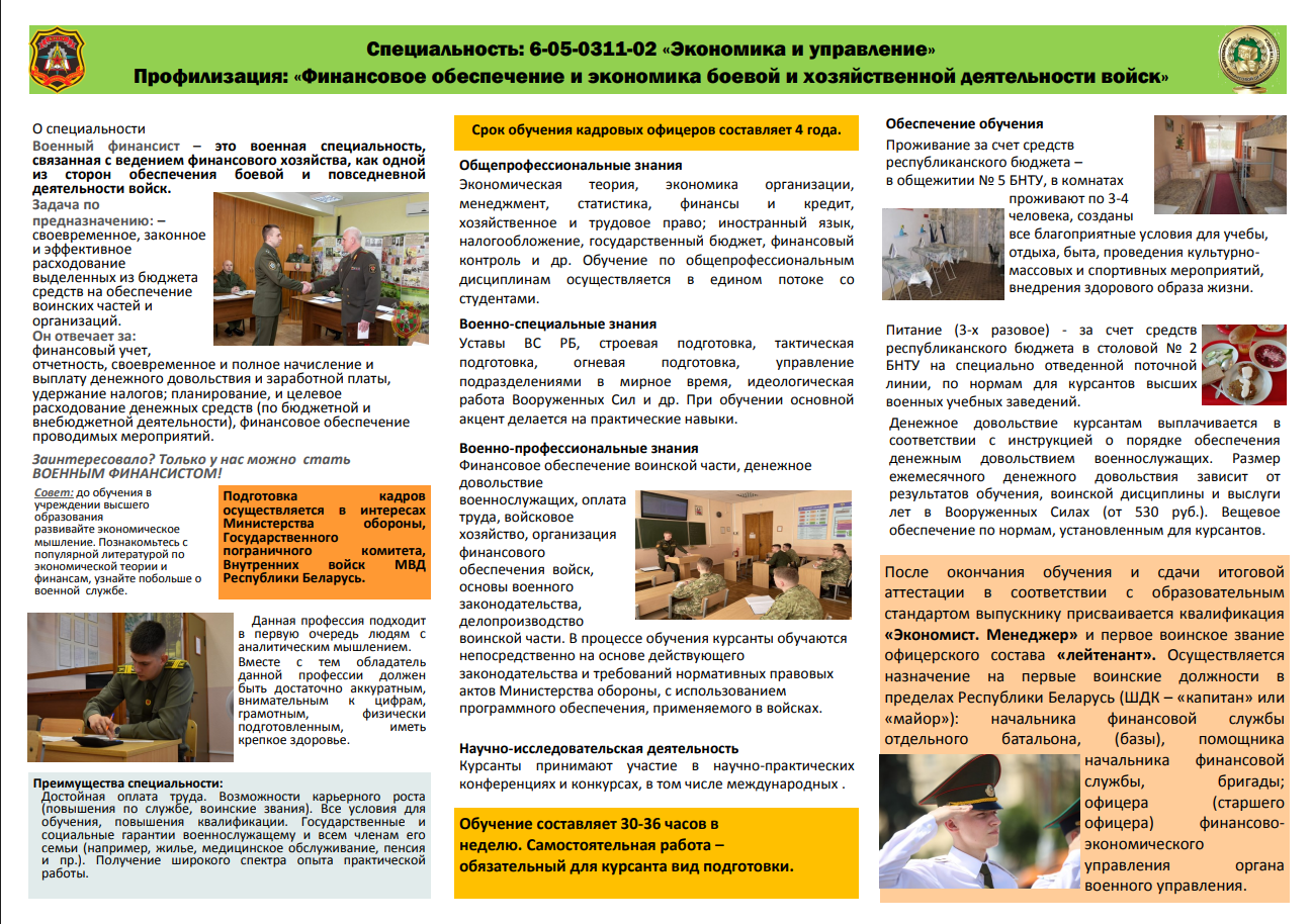«Организация финансовой деятельности войск» военно-технического факультета БНТУ