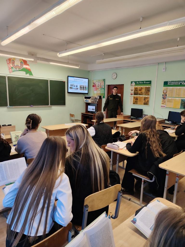 В ходе встречи курсант рассказал о Белорусской государственной академии авиации, особенностях обучения на военном факультете, условиях поступления, требованиях к абитуриентам и порядке прохождения медицинского и профессионального отбора. Особое внимание было уделено учебному распорядку, сочетанию общеобразовательных, специальных и военных дисциплин, а также физической подготовке курсантов. Учащиеся узнали о перспективах дальнейшей службы, получении офицерского звания, распределении выпускников и социальных гарантиях для военнослужащих.