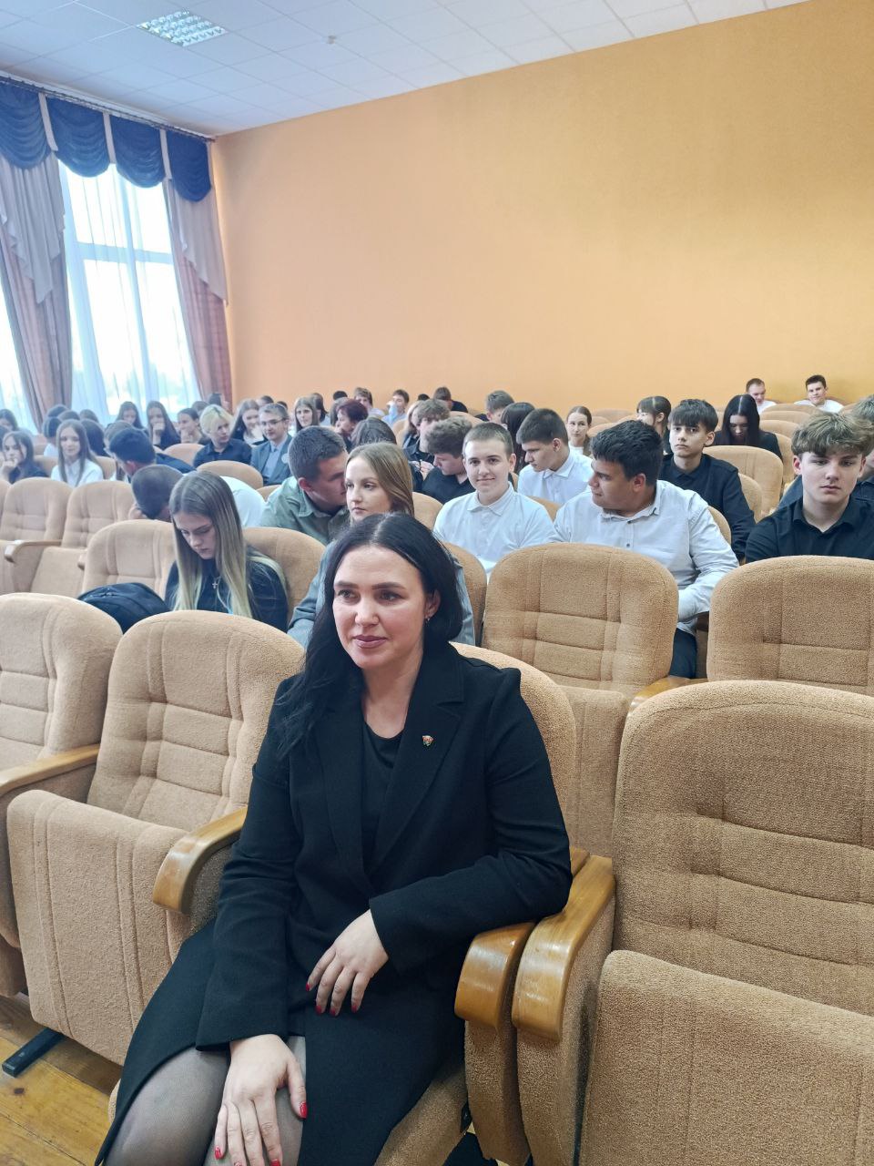 На втором этапе ШАГа «МЫ РАЗМЫШЛЯЕМ» состоялся диалог с гостем - Климчук Натальей Александровной, первым секретарем Волковысского РК ОО «БРСМ». Наталья Александровна подчеркнула важность вклада молодого поколения в развитие государства и призвала каждого быть активными, достигать своих целей. Наталья Александровна уделила особое внимание уважительному отношению к государственным символам страны, о недопущении надругательства и неуважительного отношения к государственной символике. Поговорили о личных качествах гражданина, о том, что значит быть патриотом своей страны.