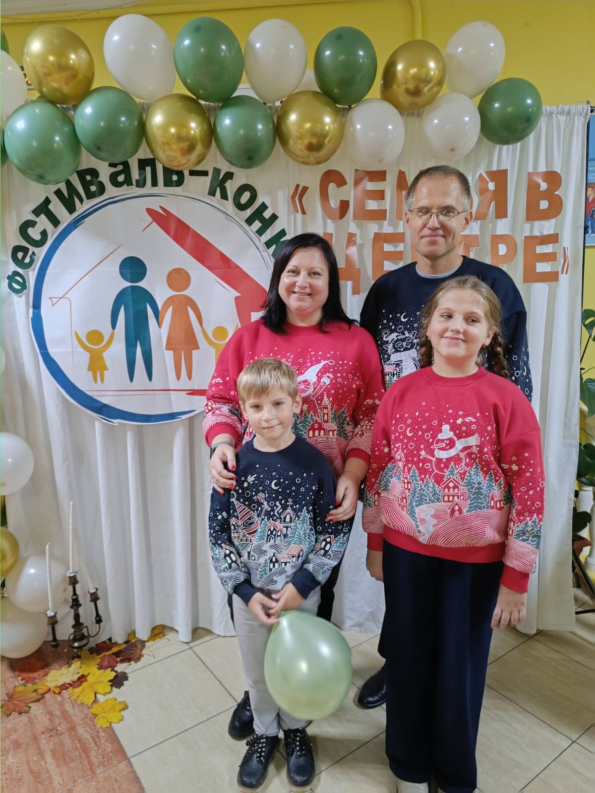 Педагог - психолог Сонец С.Н. со своей семьей приняла участие в фестивале - конкурсе в рамках проекта шестого школьного дня "Семья в центре". Рассказали о семейных традициях: совместное празднование Дней рождений, значимых дат и праздников; совместные ужины и воскресные обеды; чтение перед сном; настольные игры; активный отдых и совместные путешествия; семейные фотосесии; религиозное воспитание; сохранение памяти о предках и семейных историях. Поучаствовали в конкурсе визитка "Семейная история", конкурсе традиционных блюд "предков не забываем - традиции сохраняем!",конкурсе "Творческая симфония: семья в гармонии".