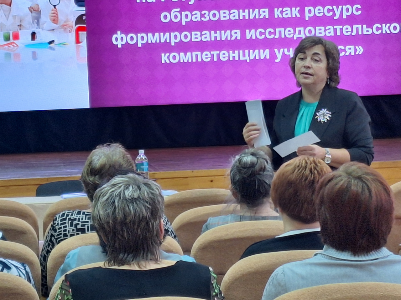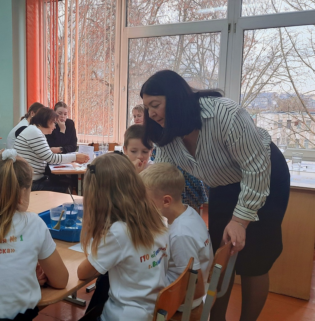 Учитель Шеванюк Анна Казимировна поделилась своим опытом организации исследовательской деятельности, а учителя Урбанович Валентина Станиславовна и Степанчук Наталья Николаевна совместно с учащимися вторых классов провели практикум для учителей по теме «Лаборатория открытий: секреты водных экспериментов», в ходе которого юные исследователи нашли объяснение загадочным явлениям.