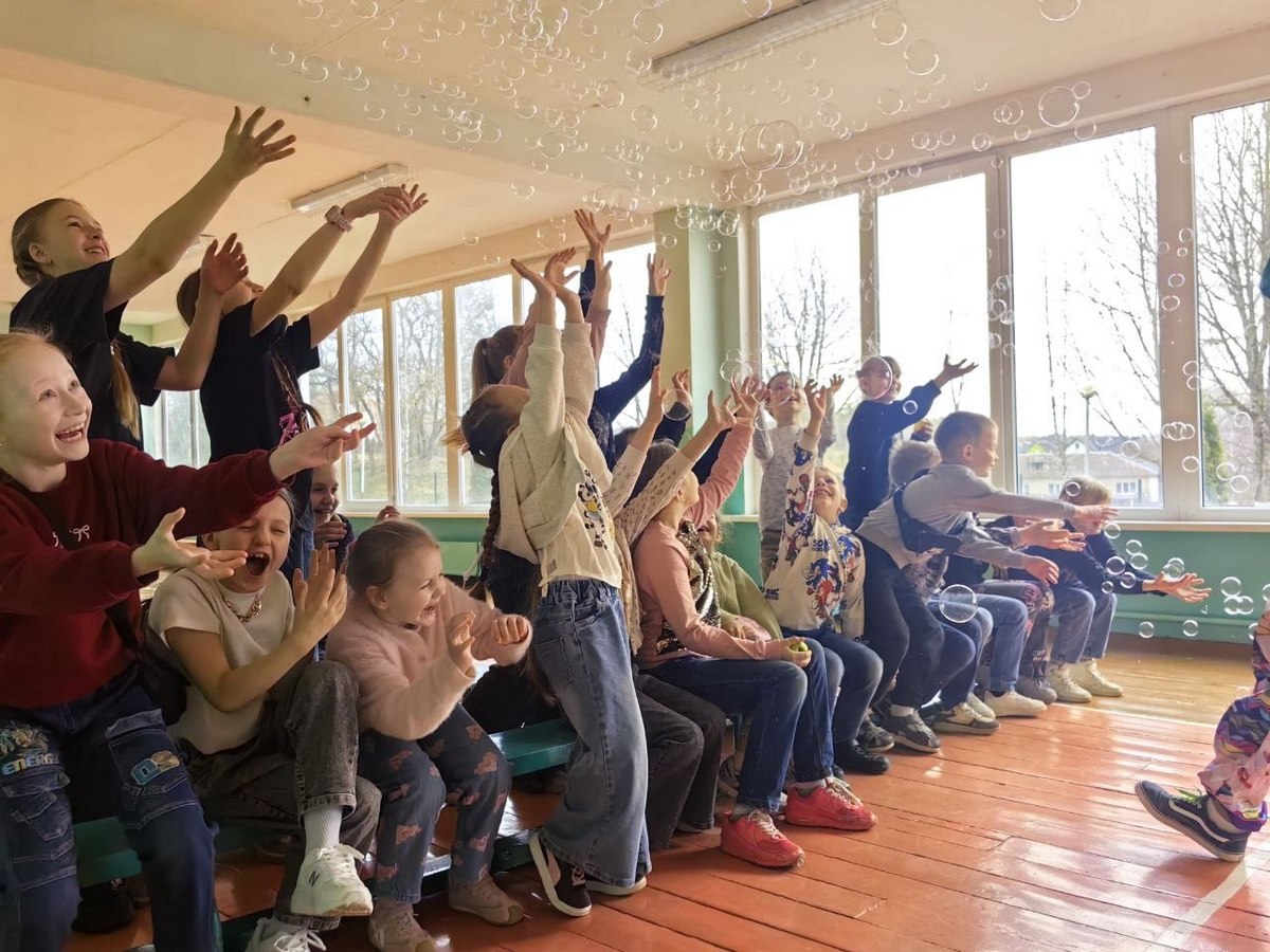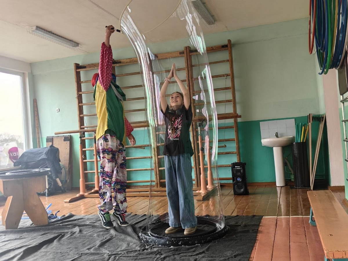 Настоящим подарком для всех стало шоу мыльных пузырей. Волшебство, радужные переливы и восторг в глазах детей — это было невероятно красиво! Такой сказочный сюрприз подарил всем отличное настроение и яркие кадры.