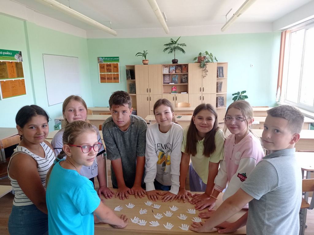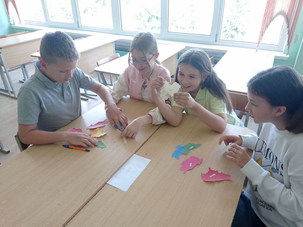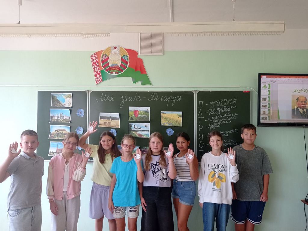 6 сентября в рамках шестого школьного дня прошла познавательная игровая программа «Моя земля - Беларусь». Команды «Волковысские зубры» и «Василёк» соревновались за звание «Лучший знаток своей Родины». Ребята складывали из 6 пазлов (областей) территорию нашего государства, угадывали города нашей страны по их культурным объектам, людей, которые родились в Беларуси и прославили её, писали пожелания белорусскому народу на ладошках-стикерах.