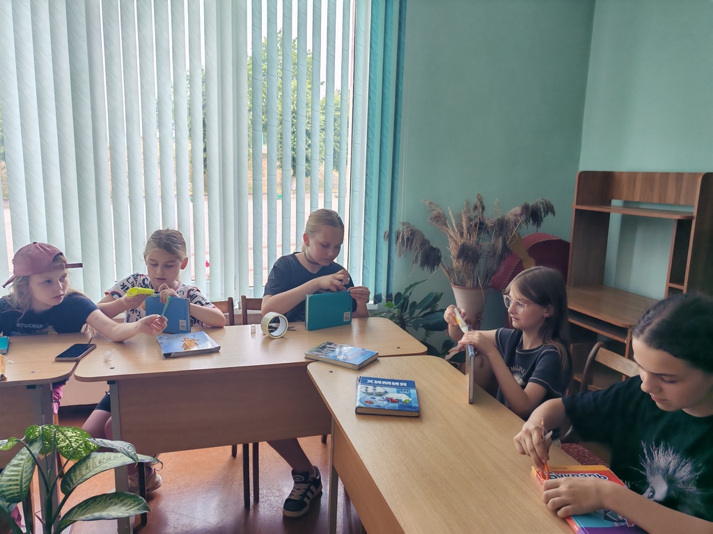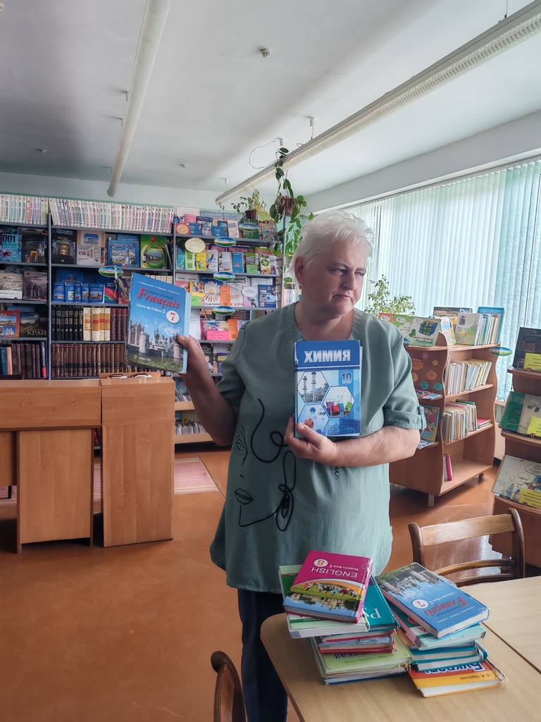 • Девочки помогли подклеить книги в библиотеке гимназии.