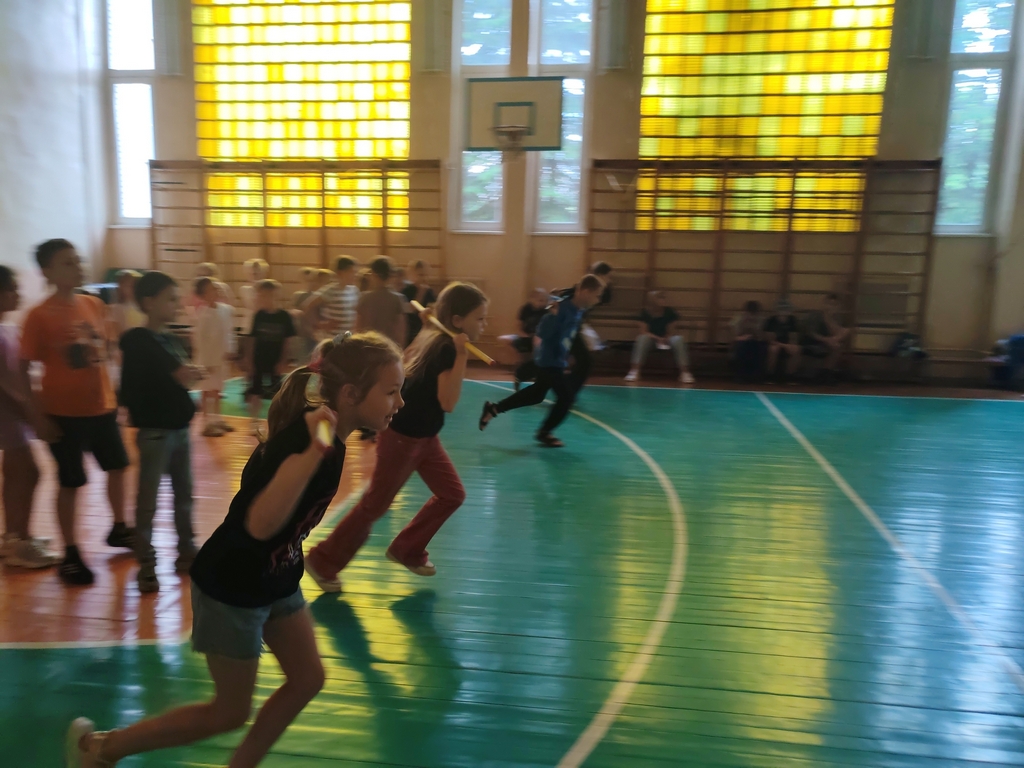 На весёлых стартах команды веселились и старались быстрее проделать задание.