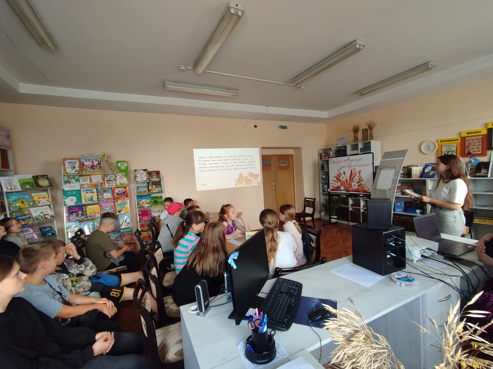 📚 Далее ребята 3 и 4 отрядов отправились в Волковысскую районную библиотеку, где приняли участие в экскурсии по залам библиотеки и познакомились с краеведческим фондом. Презентация тематических книг, архивных материалов и мультимедийных ресурсов показала богатство документального наследия региона. Сотрудники библиотеки провели интерактивное занятие по работе с источниками информации.